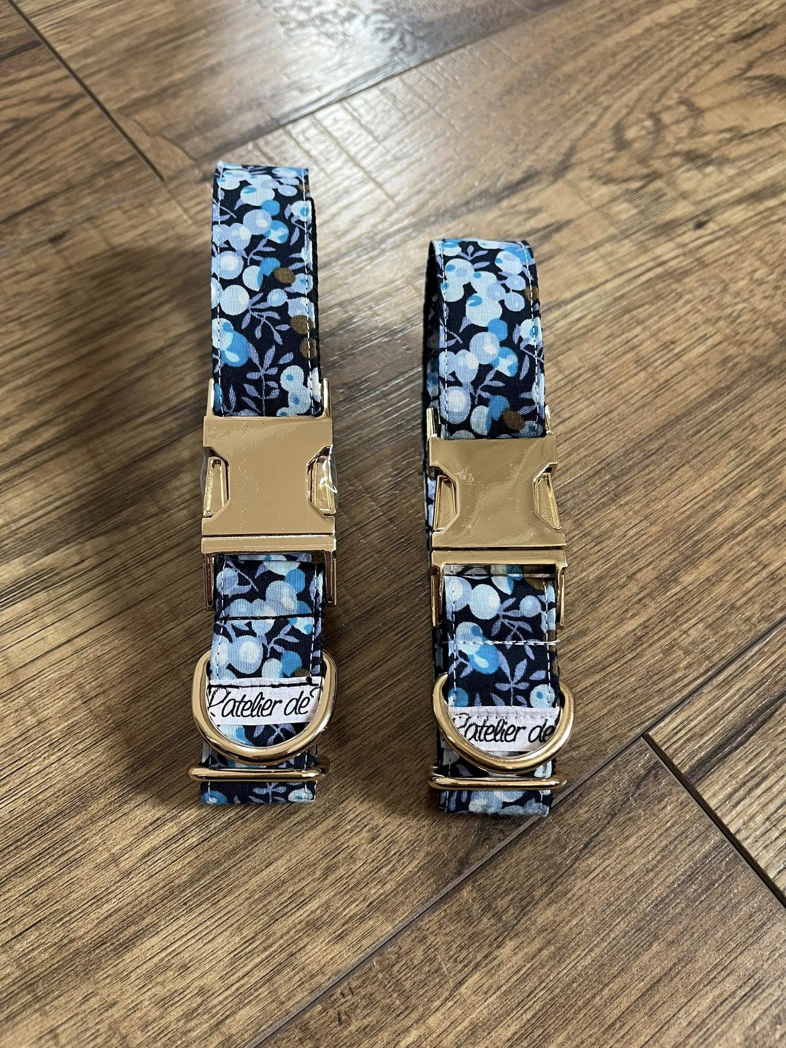 Les colliers sont réglables, les tissus (principalement en coton) sont cousu sur de la sangle en polypropylène.