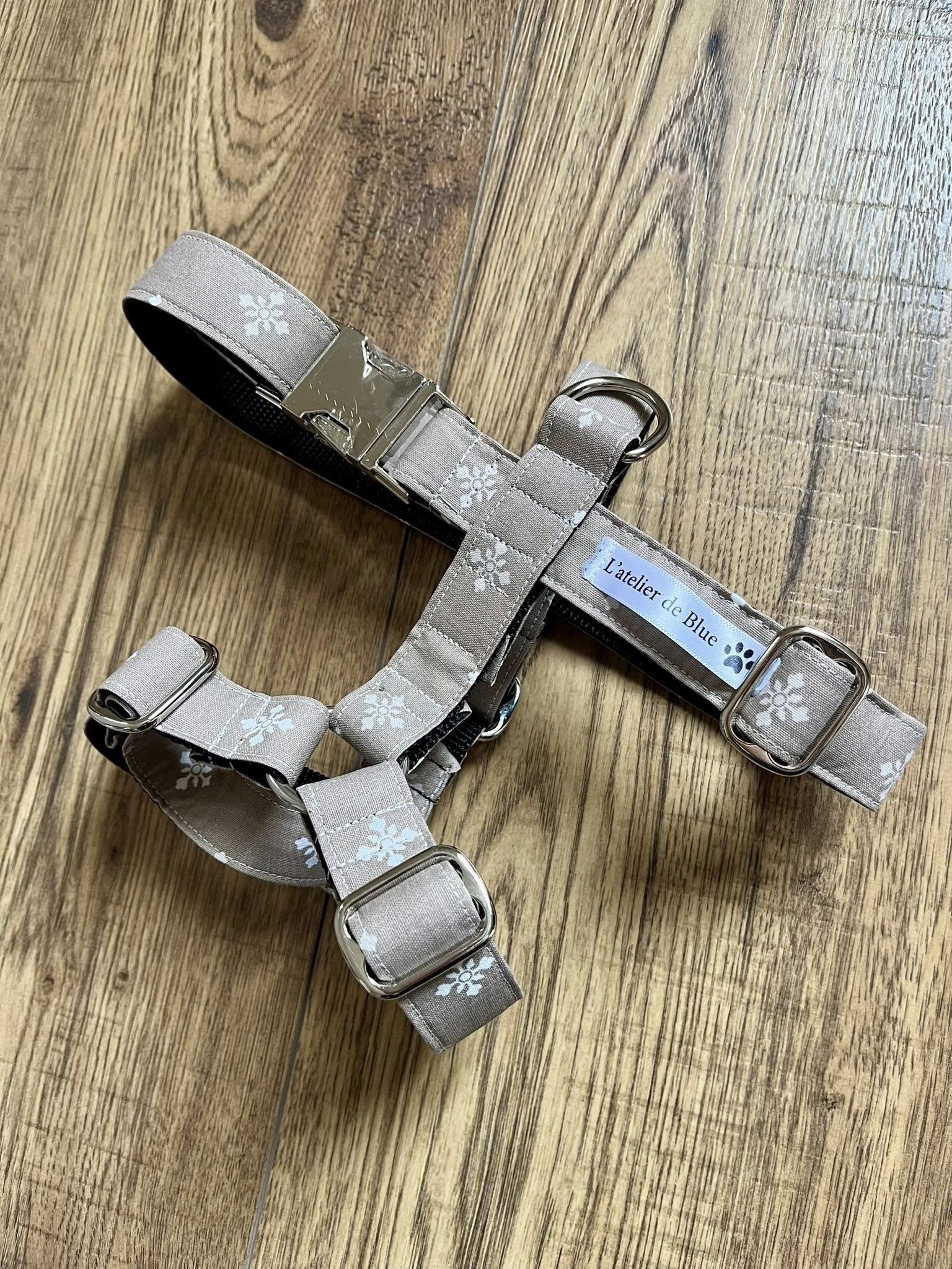 Harnais en H, spécialement conçu pour ne pas bloquer les épaules du chien.